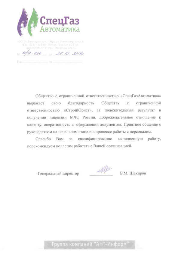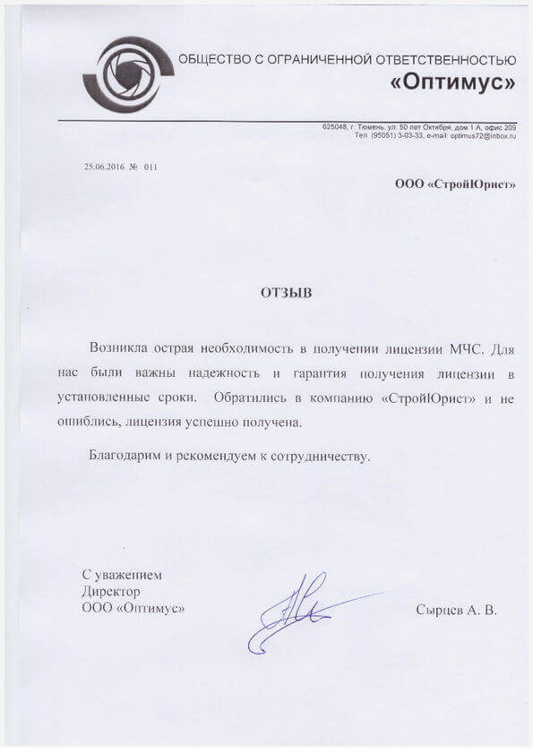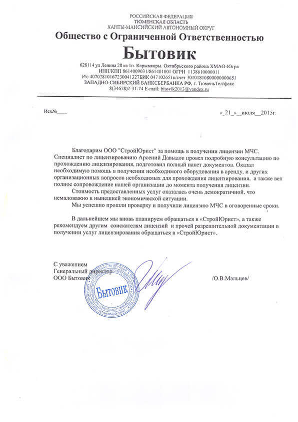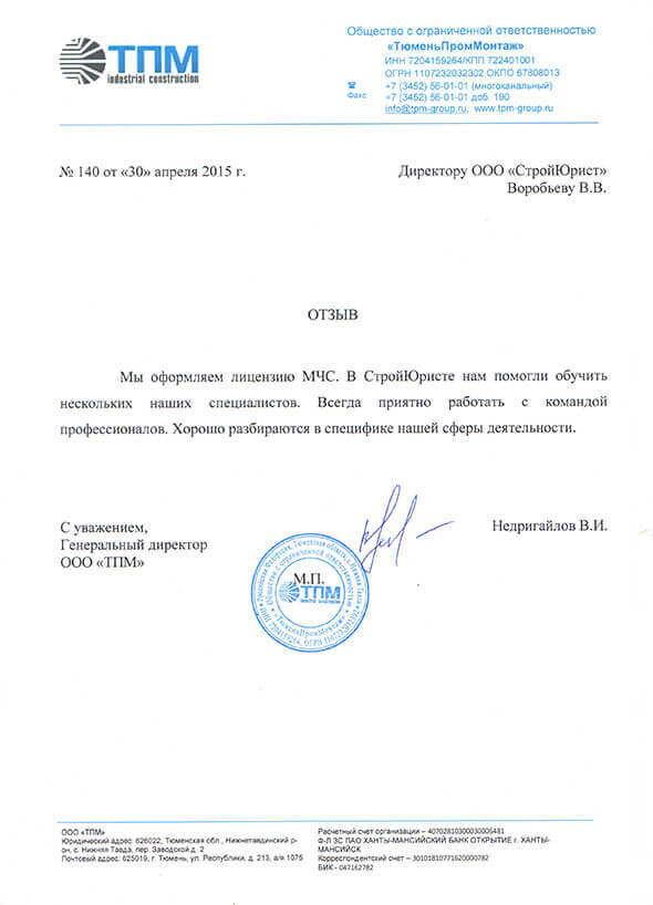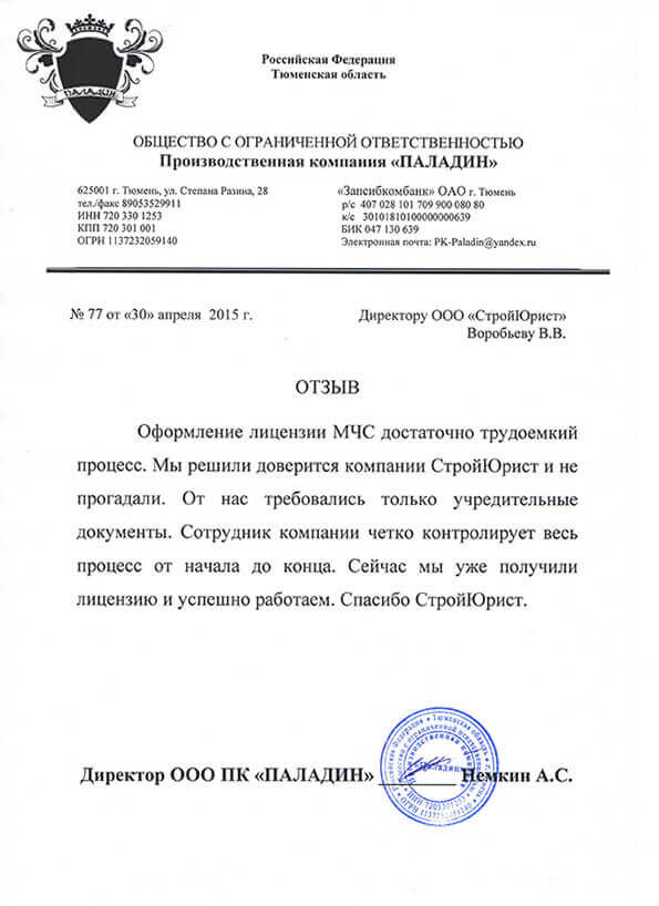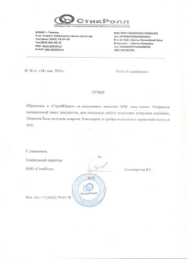 Отзывы клиентов "СтройЮрист" по лицензированию МЧС в Томске