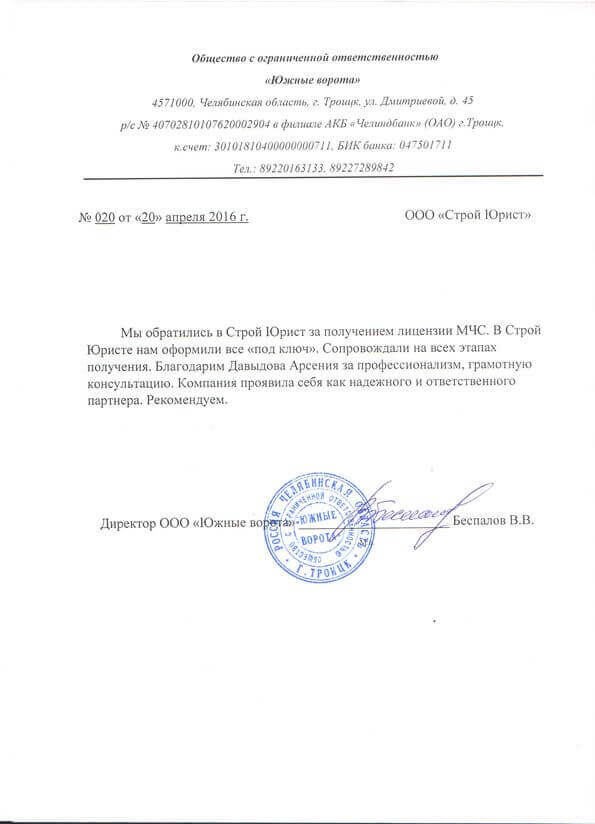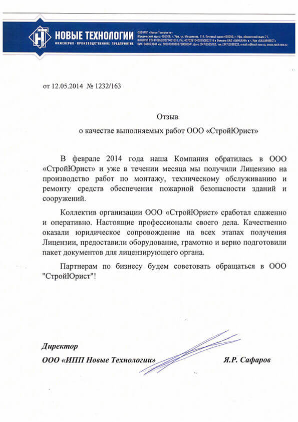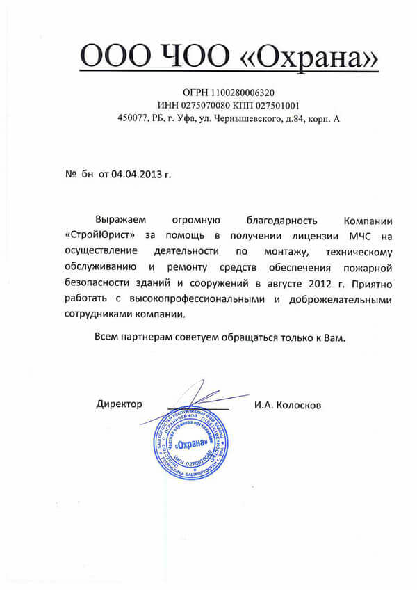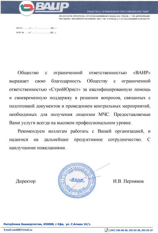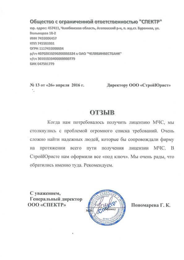 Отзывы клиентов "СтройЮрист" по лицензированию МЧС в Томске