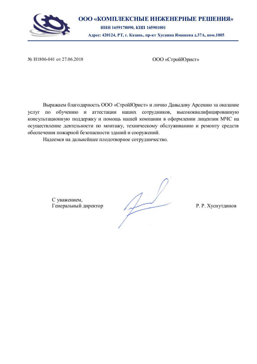 Отзывы клиентов "СтройЮрист" по лицензированию МЧС в Томске