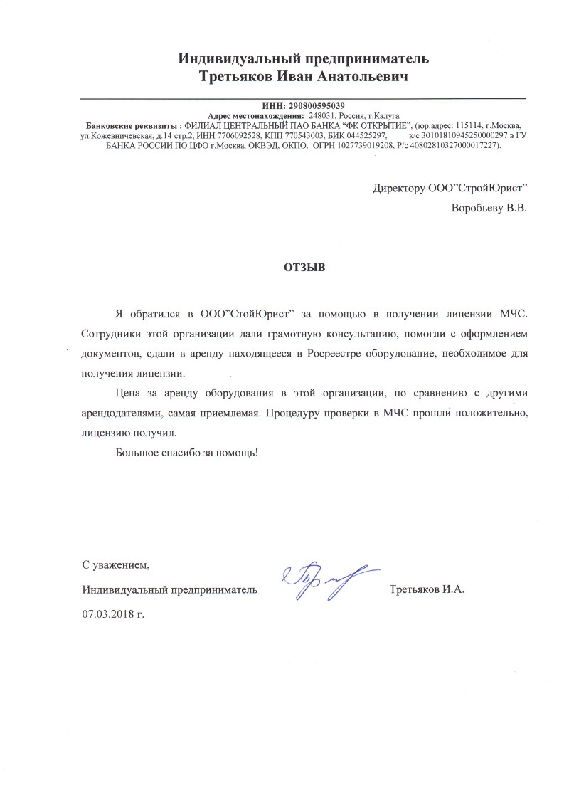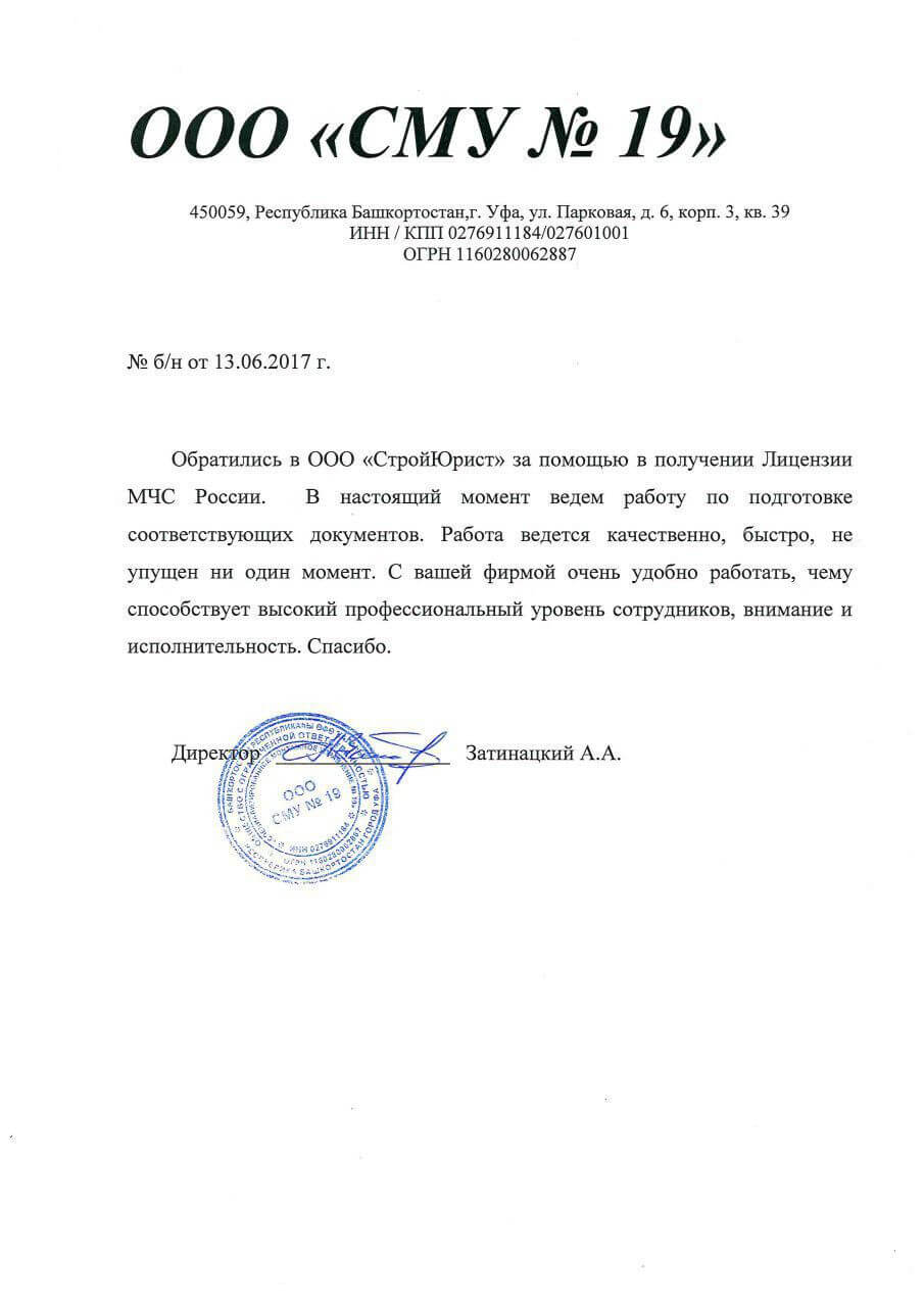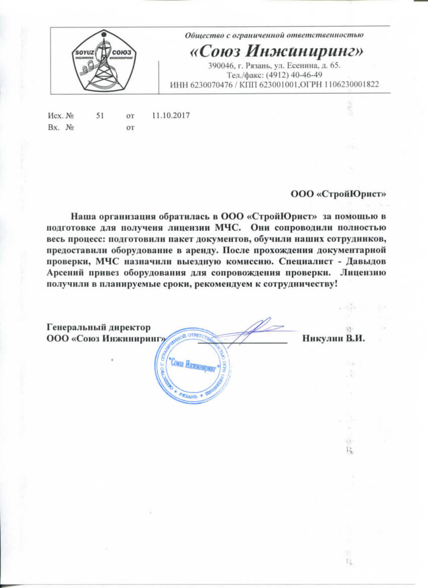 Отзывы клиентов "СтройЮрист" по лицензированию МЧС в Томске