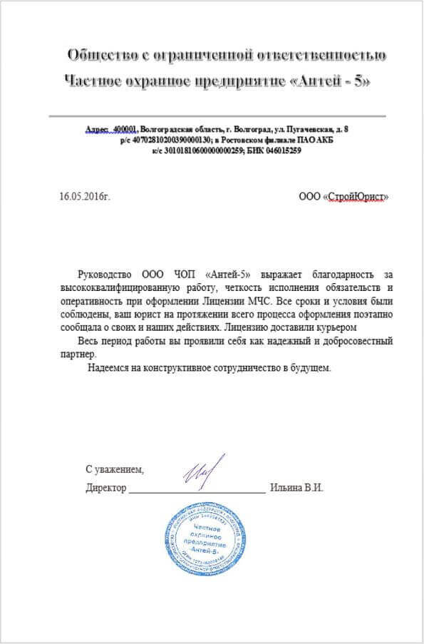 Отзывы клиентов "СтройЮрист" по лицензированию МЧС в Томске